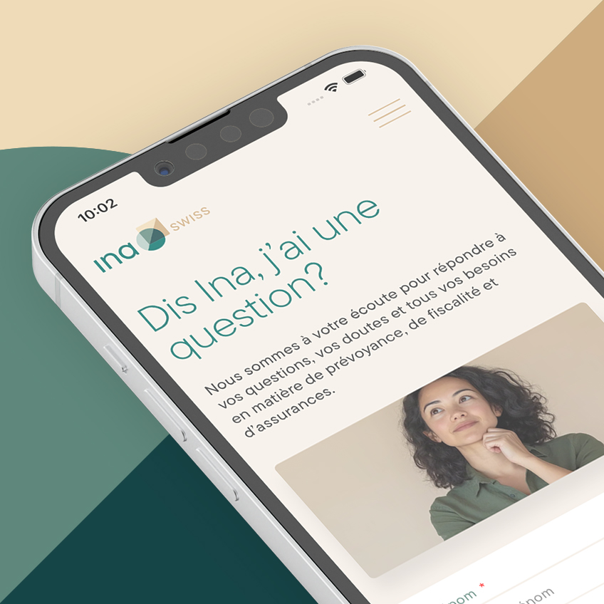 Nous avons développé une marque distinctive et une identité visuelle élégante pour Ina Swiss. Cette dernière se retrouve à travers les pages du site comme autant de repères de réassurance. La marque se dote également d’un storytelling efficace basé sur la formule « Dis Ina…? ». Une iconographie simple et cohérente permet de consolider le tout.