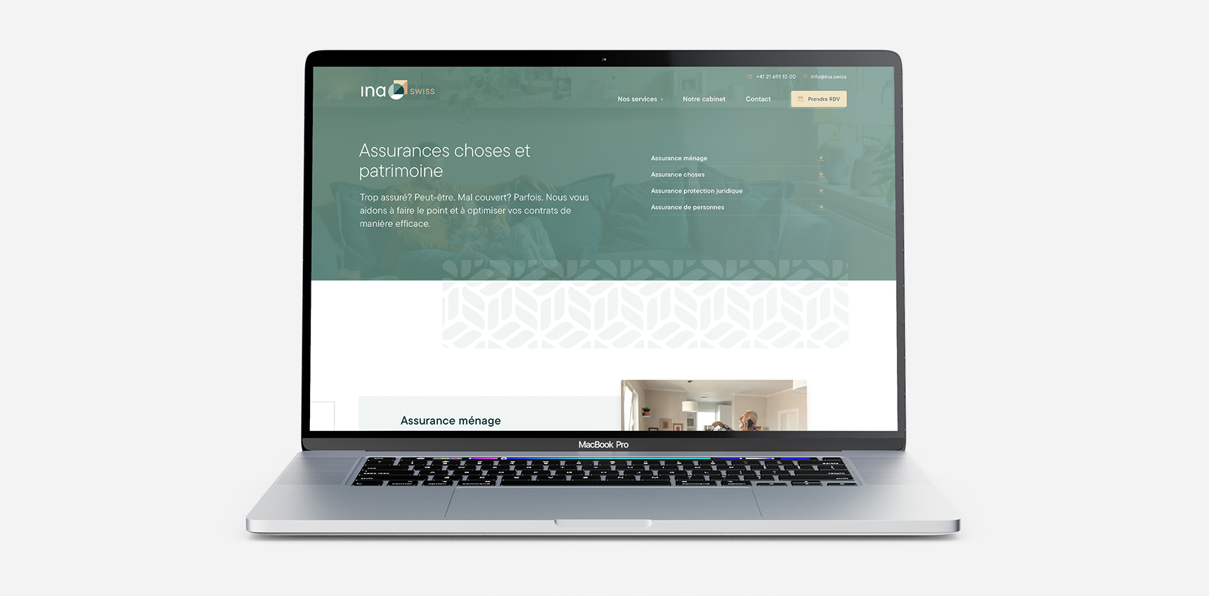Pour Ina Swiss, un cabinet de conseils financiers à Genève, nous avons élaboré un site internet élégant distillant une information claire et détaillée. Nos objectifs : proposer un site dans l’esprit de l’identité visuelle, doté d’une structure optimisée pour le SEO et orienté pour l’acquisition de nouveaux clients.
