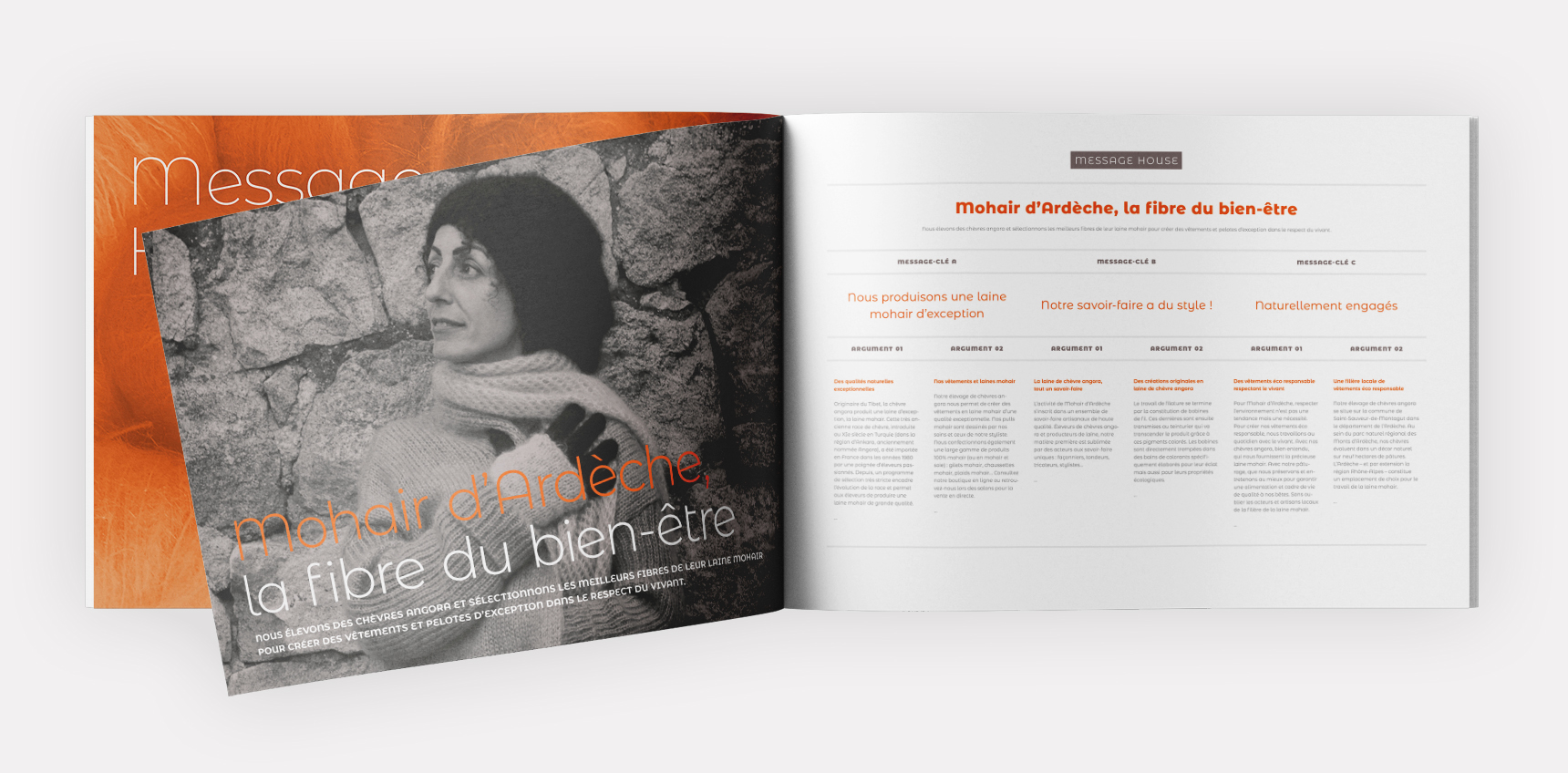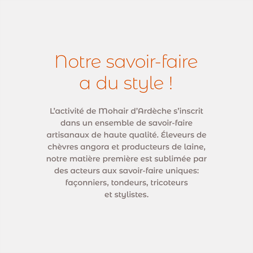 Mohair d’Ardèche élève des chèvres angora et produit une laine mohair d’exception. A travers la rédaction du message house, nous souhaitions valoriser une filière artisanale, créative et proche du vivant.